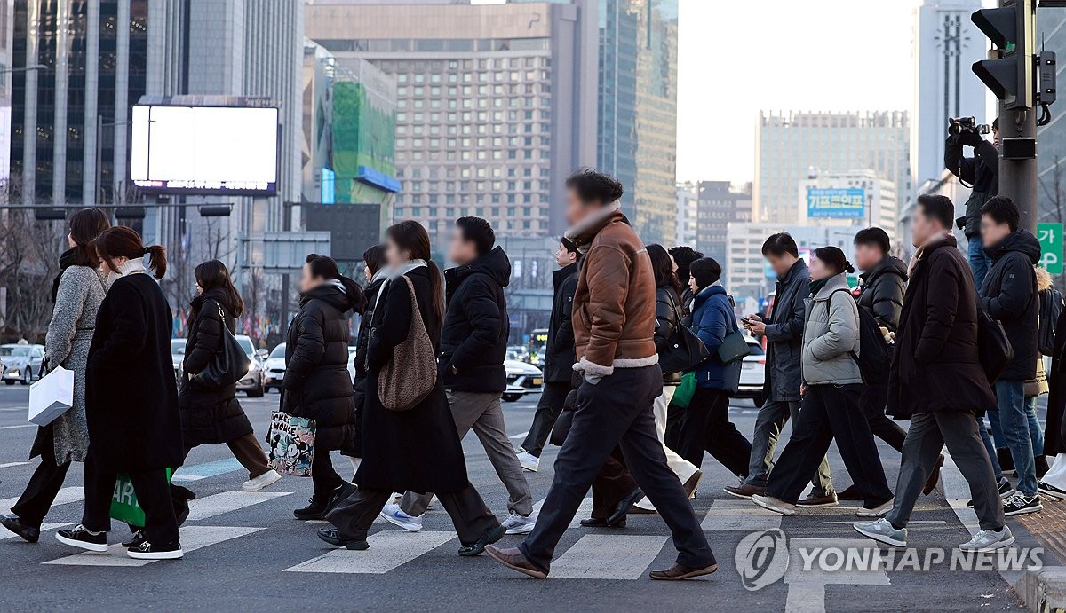 전국 대부분 지역의 아침 기온이 영하권에 머문 19일 서울 종로구 광화문 사거리에서 설 연휴를 끝낸 시민들이 출근하고 있다. 연합뉴스