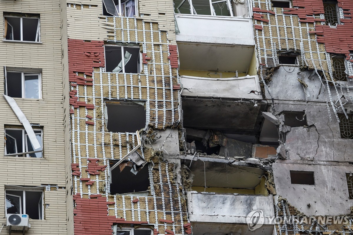 러시아 드론 공격에 부서진 키이우 아파트. 로이터=연합뉴스