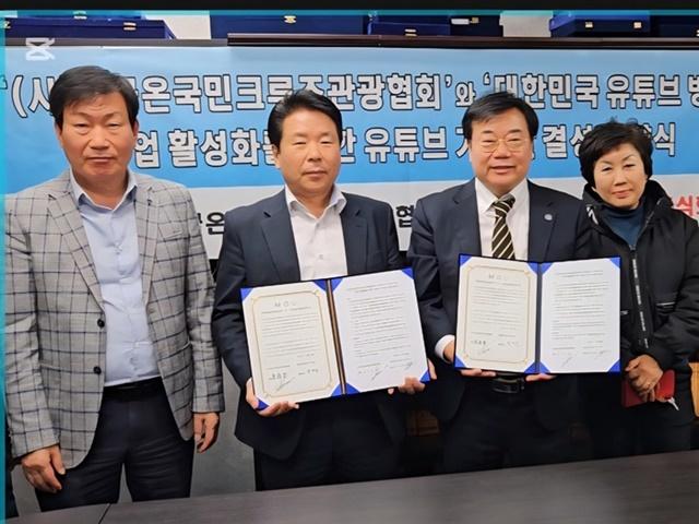 ▲대한민국단골주식회사(정세균 대표 왼쪽에서 두 번째)와 한국온국민크루즈진흥원(홍순봉 회장 왼쪽에서 세 번째)이 유튜브 공동체 플랫폼을 기반으로 한 공동 사업 추진을 위한 업무 협약(MOU)을 한 후 사진 촬영을 하고 있다.