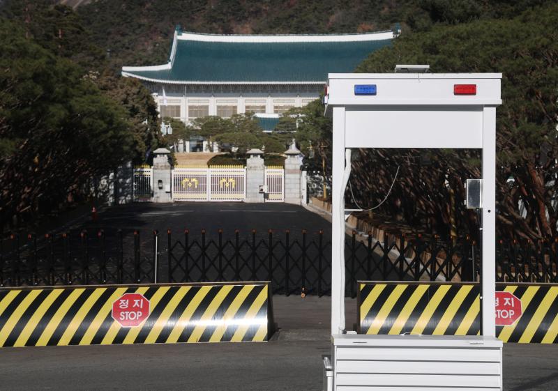▲대통령 집무실 청와대 복귀가 임박한 21일 종로구 청와대 앞에 경찰 초소가 설치돼 있다. 연합뉴스
