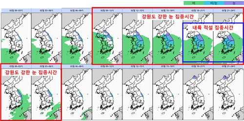 특히 이번에 내리는 눈은 습기를 가득 머금어 무게가 무거운 ‘습설’이 될 것으로 분석됐다. 습설은 일반 눈보다 하중이 훨씬 크기 때문에 비닐하우스나 축사 등 노후 시설물의 붕괴 사고 위험이 크다. 이에 따라 관계 당국은 시설물 관리에 철저히 대비할 것을 당부했다.