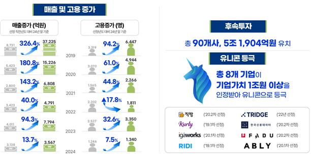 중소벤처기업부는 2019년부터 시작된 이 프로그램을 통해 2024년까지 총 126개의 예비유니콘을 발굴했으며, 이들에게 누적 7,972억 원의 특별보증을 지원했다. 지원을 받은 기업들은 괄목할 만한 성과를 보였다.