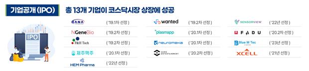 이 외에도 하나기술, 원티드랩, 센서뷰, 제주맥주 등 13개사는 코스닥 시장에 성공적으로 상장하며 자본 시장에서도 그 가치를 인정받았다.